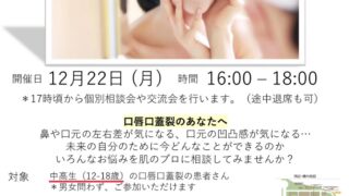 資生堂ライフクオリティーセンターのご担当者様より、カバーメイクの講習会開催のお知らせがございましたので、ご紹介させていただきます。中高生(12~18歳)の口唇口蓋裂当事者でご興味ある方いらっしゃいましたら是非参加してみて […]